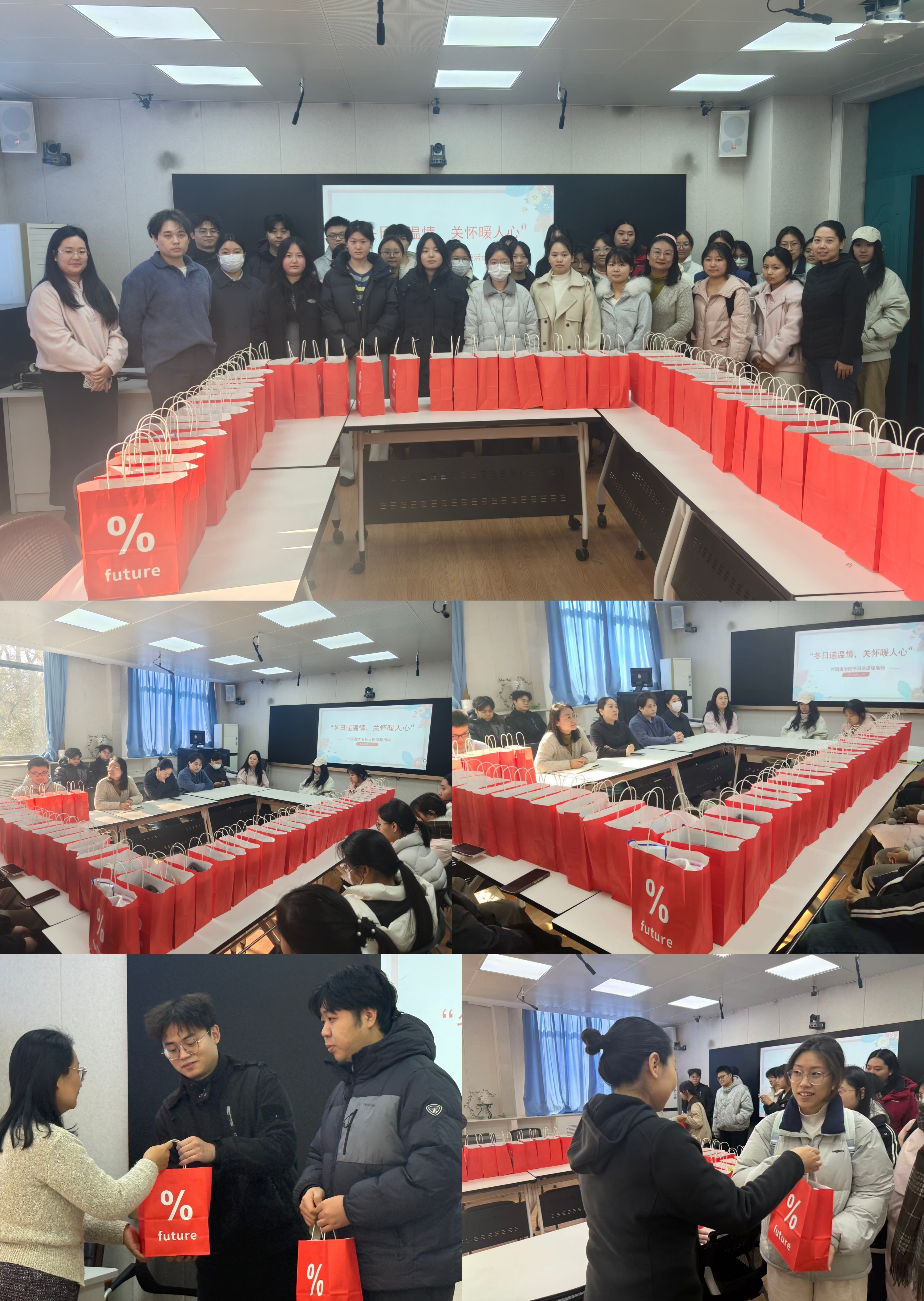 冬季送温暖活动是外国语学院资助育人工作的重要组成部分,也是学院“以人为本”育人理念的生动实践。此次活动不仅积极响应了学校资助工作的部署,更是学院关爱学生成长的生动体现,有效增强了同学们的校园归属感、幸福感与获得感。接下来,学院将持续健全资助育人体系,丰富关怀形式,精准对接学生需求,让资助有温度、育人有力度,从而激励更多学子以积极向上的精神状态投入到学习和生活中,在成长道路上稳步前行。