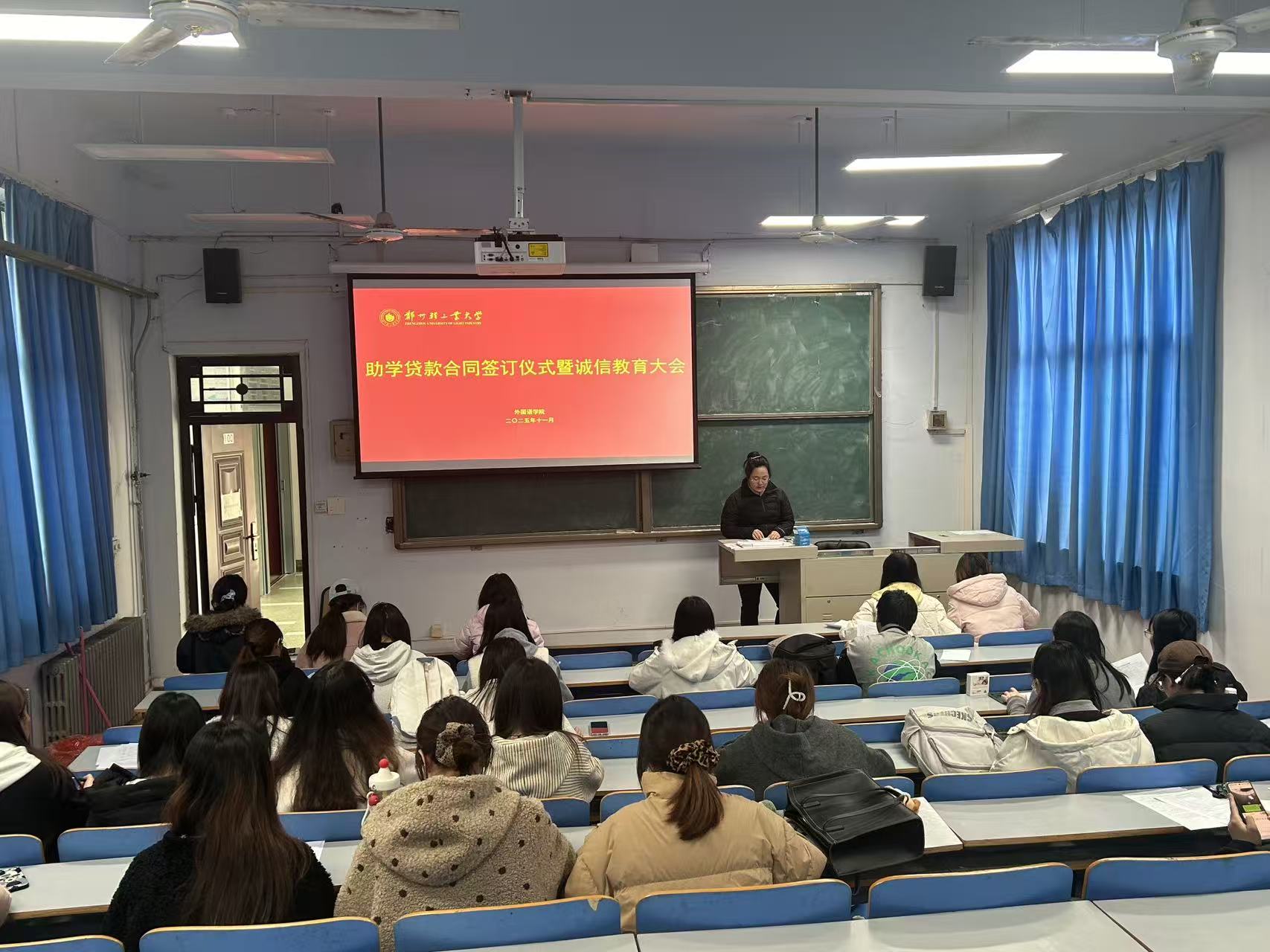 为贯彻落实高校资助政策,强化学生诚信履约意识,保障高校助学贷款工作的顺利开展,11月6日下午,外国语学院在东二楼100召开2025年度国家助学贷款合同签订仪式暨诚信教育大会学院学生资助工作负责人魏冉、申请2025年度高校贷款的学生参加了本次会议。